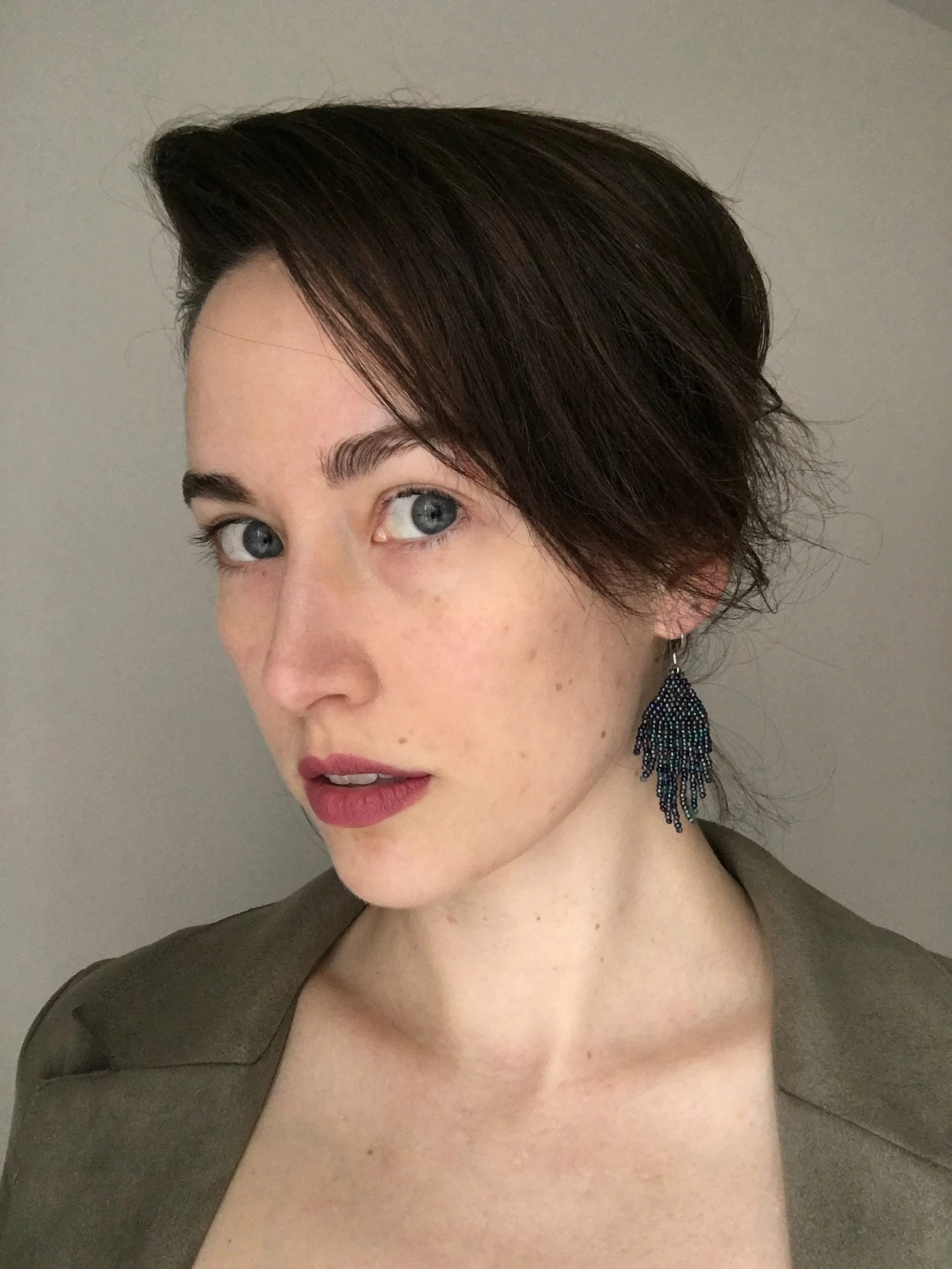 Emporium › Short Fringe Image 1 of 3 Image 2 of 3 Image 3 of 3 Short Fringe $25.00 A pop of colour and subtle movement. Color: Green Metallic Multi Quantity: Add To Cart Added! A pop of colour and subtle movement. Specifics Czech Glass BeadsStainless Steel Hooks Length - 6.5 cmWeight - 2 g